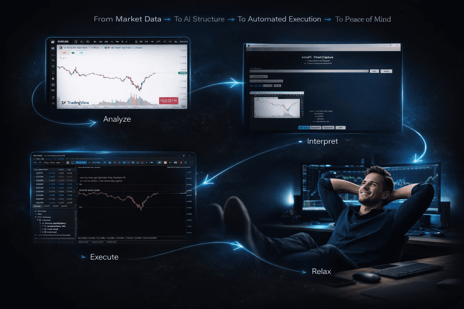 AstraFX Capture transforms your TradingView charts into structured, customizable AI analysis with optional MT5 execution integration — without removing your control.